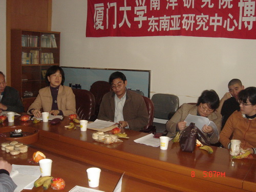 范丽书记在启动仪式上指出,作为我院学习实践科学发展观的系列活动,青年教师读书会今后将每月举行,旨在让学院年轻教师就读书心得或个人学术观点进行交流,并通过该活动,创造一个师生交流和相互学习的平台。在短暂的启动仪式后,王付兵老师作为第一场青年教师读书会的主讲人,首先就《福建人向马来亚的移民》一题做了报告。报告分三部分分别介绍了福建人向海峡殖民地、马来联邦、马来属邦的移民。报告内容翔实,资料丰富,特别是在移民人口的统计上,掌握了大量的珍贵资料。王老师指出,该题目为其博士论文其中一节,希望得到其他老师与同学的宝贵意见。随后,张旭东、赵海立、施雪琴、张长虹、沈燕清等老师也针对报告提出了意见和建议。另外,在场的几位博士生还就博士论文的选题、写作等问题与在场老师进行交流,互相交换了意见。读书会在轻松、愉快的氛围中进行,五点左右圆满结束。