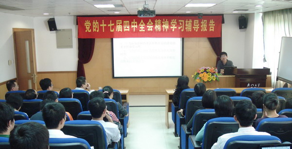 为积极响应校党委关于深入学习贯彻党的十七届四中全会精神的号召,11月5日下午在嘉三514会议室,国际关系学院/南洋研究院邀请了我校宣传部副部长徐进功教授为全院教职工及学生党员、入党积极分子作了“党的十七届四中全会精神”的专题学习辅导报告。