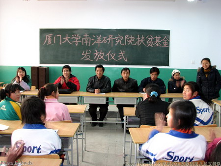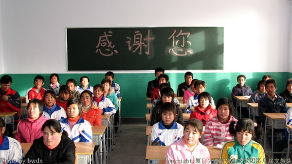 近年来,我校在贵校的深切关怀和帮助下,学校办学有了质的变化,学校各项工作都有了新的起色,无论是教育教学,还是学校“四化”建设等,都能达到全县中等行列。这些成就的取得,都离不开你们的援助和全体志愿者的努力工作。自2000届志愿者队员到我校参加支教工作以来,全体队员在认真搞好教育教学工作的同时,加大力度与社会各界争取联系,积极争取社会各界救助我校服务范围内所有失学少年、贫困学生和努力改善我校办学条件,在积极扩大宣传范围的同时,全体志愿者队员走村串户,认真排查我校服务范围内所有贫困户和失学少年,在作好家访工作的同时,全体志愿者队员将贫困学生、失学少年家庭情况、学习情况和我校现有教育资源写成材料在互连网上发布,争取更大范围救助。截止目前,贵校青年志愿者通过各种方式联系社会共救助贫困学生1000余名,为我校购置了办公设施和生活用品,累计援助资金达30余万元,其中贵校援助资金10万余元。今年,贵校的两位青年志愿者,作为女同学,冒着北方的风雪,寒冷的天气,对我校山里的贫困孩子家庭走家串户,挨个家访收集资料,这种精神感动了我们全体师生和所有的家长。听到贵院师生又资助我校的50名贫困孩子,听到这一消息,我们的校园里全体师生又爆发出热烈的掌声,和受资助孩子们的感激的眼泪。