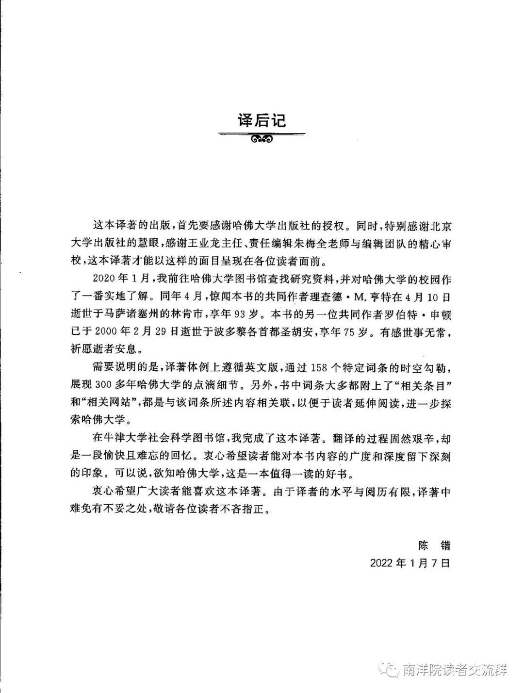 罗伯特·申顿,1962年毕业于哈佛大学,获得历史学博士学位,曾任哈佛大学董事会和监事会秘书长(1971—1991)、哈佛大学董事会校长遴选委员会管理人员、哈佛大学文理学院教务长。