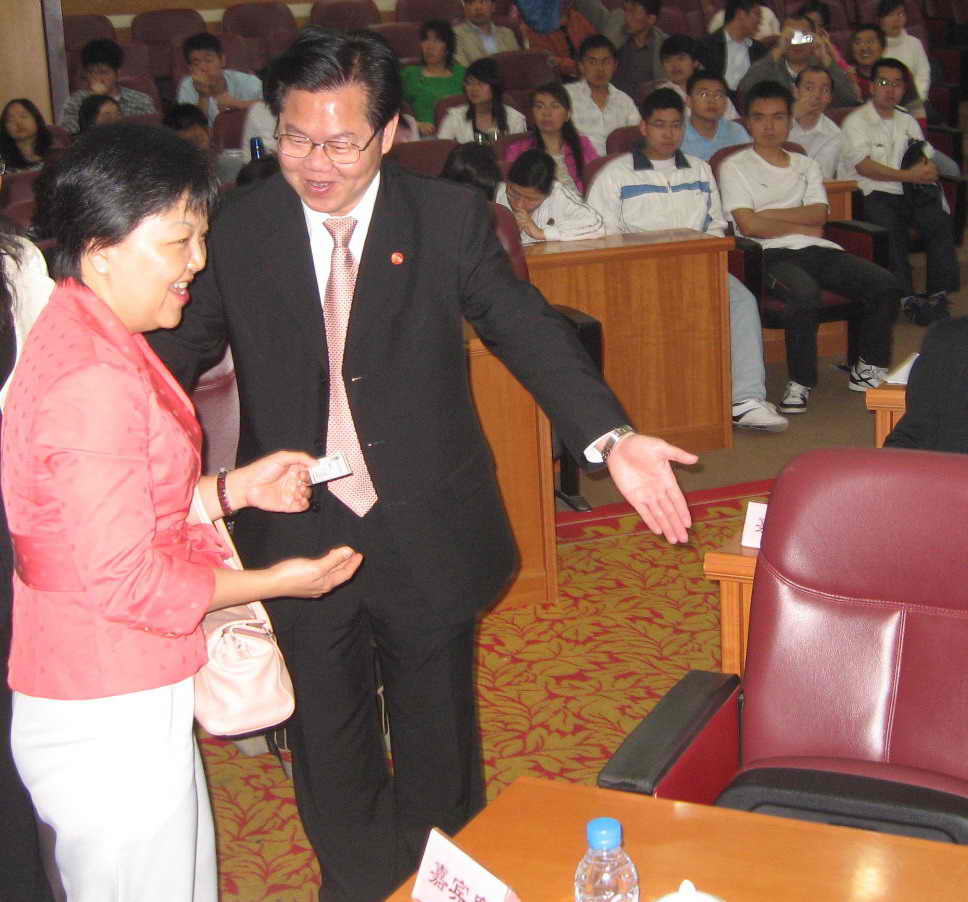 开幕式:从左至右为 厦门大学校长朱崇实、马华公会总会长黄家定、我院院长庄国土