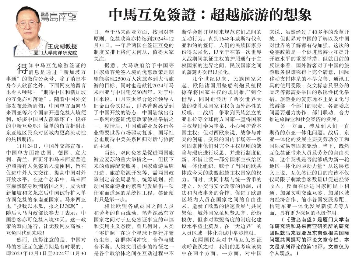 然而,值得注意的是,中国对马的签证互免蜜月期是有时限的,即2023年12月1日至2024年11月30日。至于马来西亚方面,按照对等原则,免签政策亦持续到2024年12月31日。一年后两国在签证互免的制度安排上将何去何从,值得大家关注。