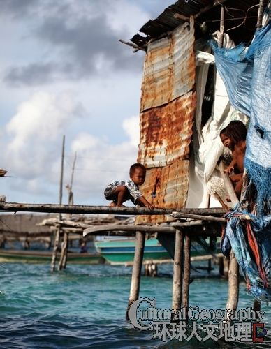 这里的海水因为深浅不同而呈现出好几种颜色,近岸沙滩处是白色,然后越靠近大海深处,海水的颜色也越深:从浅绿色变成绿色,再一点一点变成蓝色、深蓝色……在这些大约只有10平方米的木屋里,竟然住着二十来个人,平均每对夫妇都生有十个八个孩子…… 由于没有国籍身份,巴沃—罗特人只能被迫长期以海为家,凡是登陆任何岛屿都属违法行为。因此从某种意义上可以说,他们才是真正的海洋之子。 |